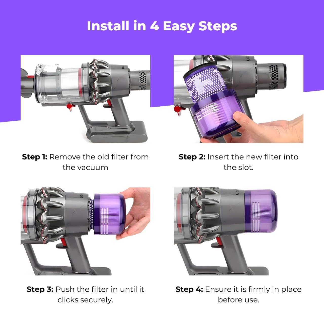 - 𝐄𝐚𝐬𝐲 𝐌𝐚𝐢𝐧𝐭𝐞𝐧𝐚𝐧𝐜𝐞: Simplify your cleaning routine with the dyson filter replacement v11; quick and hassle-free installation of the dyson v11 absolute filter; keep your dyson vacuum filter replacement on hand for uninterrupted cleaning