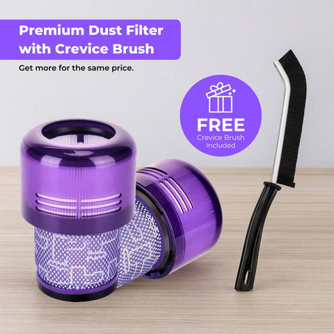 - 𝐂𝐨𝐦𝐩𝐥𝐞𝐭𝐞 𝐏𝐚𝐜𝐤𝐚𝐠𝐞 𝐃𝐞𝐭𝐚𝐢𝐥𝐬:This set includes 3 Dyson V11, V15 & SV14 replacement filters and 1 crevice brush, providing everything you need for effortless maintenance and deep cleaning. Enjoy powerful suction, cleaner air, and extended vacuum performance.