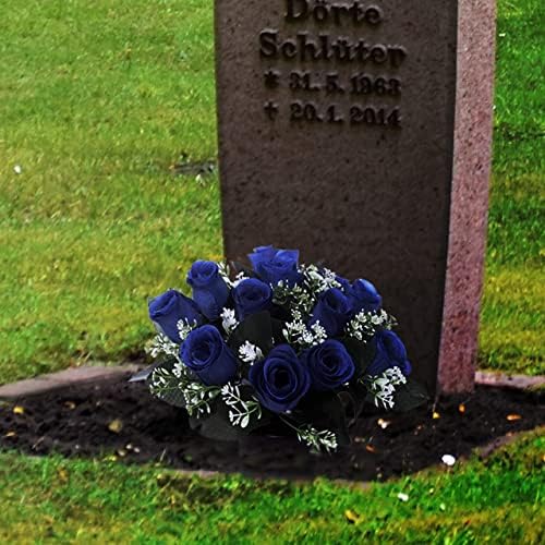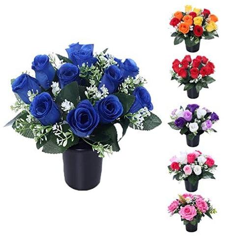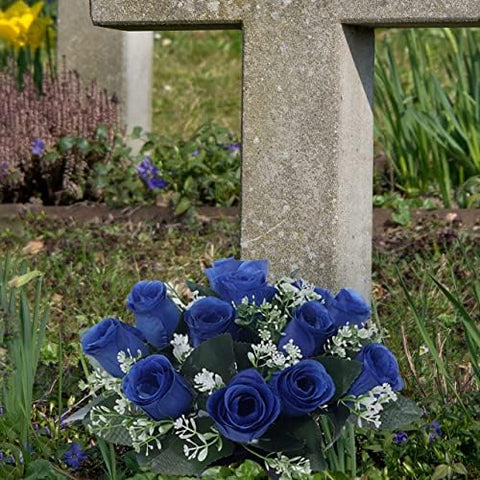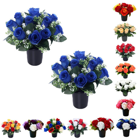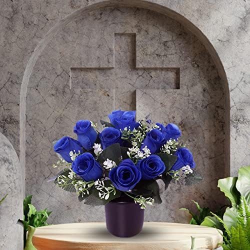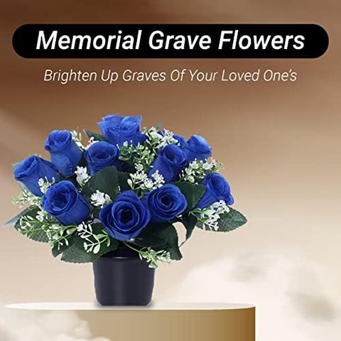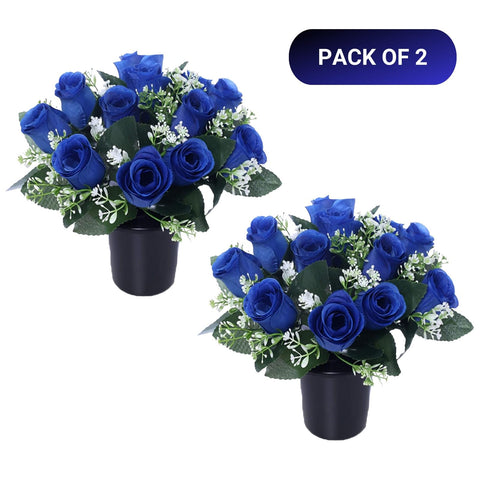 Caliko Set of 2 Grave Flower Pots with Improved Design | Artificial Flowers for Graves in Pots | 12-Head Blue Artificial Flowers | Perfect for Cemetery Decor, Christmas Tributes & Memorial Elegance. Sale