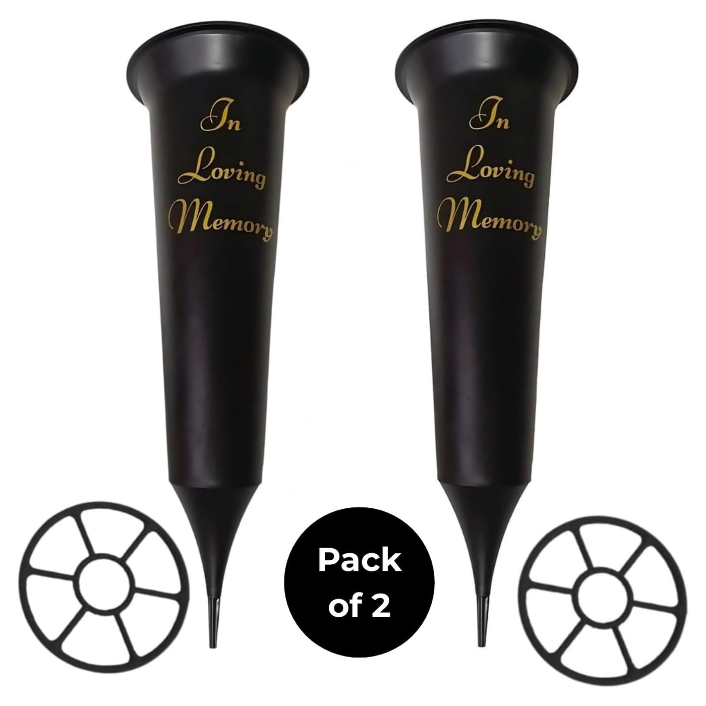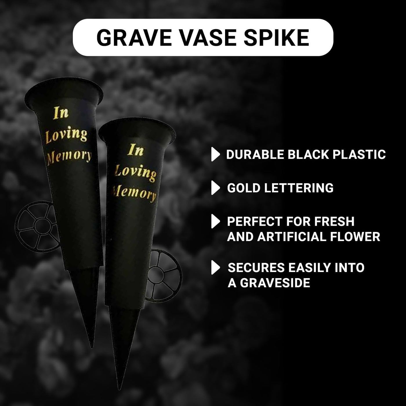 - ๐๐๐๐ ๐๐ง๐ ๐ซ๐๐ฅ๐ข๐๐๐ฅ๐: Grave flower holders to secure grave vases in place and prevent them from being knocked over or stolen. Our memorial vases for graves are made with high-quality materials and feature durable spikes that can be easily inserted into the ground. The grave vases are designed to withstand the elements and keep your vases in place, even in windy conditions.