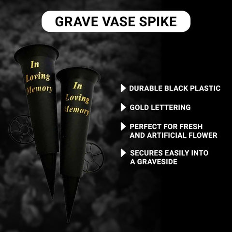 - ๐๐ข๐ ๐ก ๐๐ฎ๐๐ฅ๐ข๐ญ๐ฒ: Our cemetery vases with spikes is high-quality plastic and manufactured using precise techniques for long-lasting use. Our grave vases with spike are also a great way to deter theft, making them the perfect way to honor your loved one's memory. These size of graveside flower holders is Overall Size: 35cm Height.