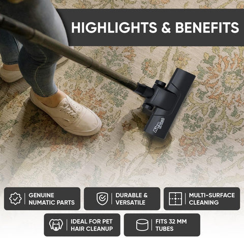 πΊππππππ πππ π«πππ πͺπππππππ: The air-driven turbine in this Henry Hoover Turbo Brush Head Attachment significantly boosts suction power β ensuring thorough cleaning on all floor types. The Henry Hoover Head excels at picking up debris that standard tools might miss, making it ideal for households with pets.