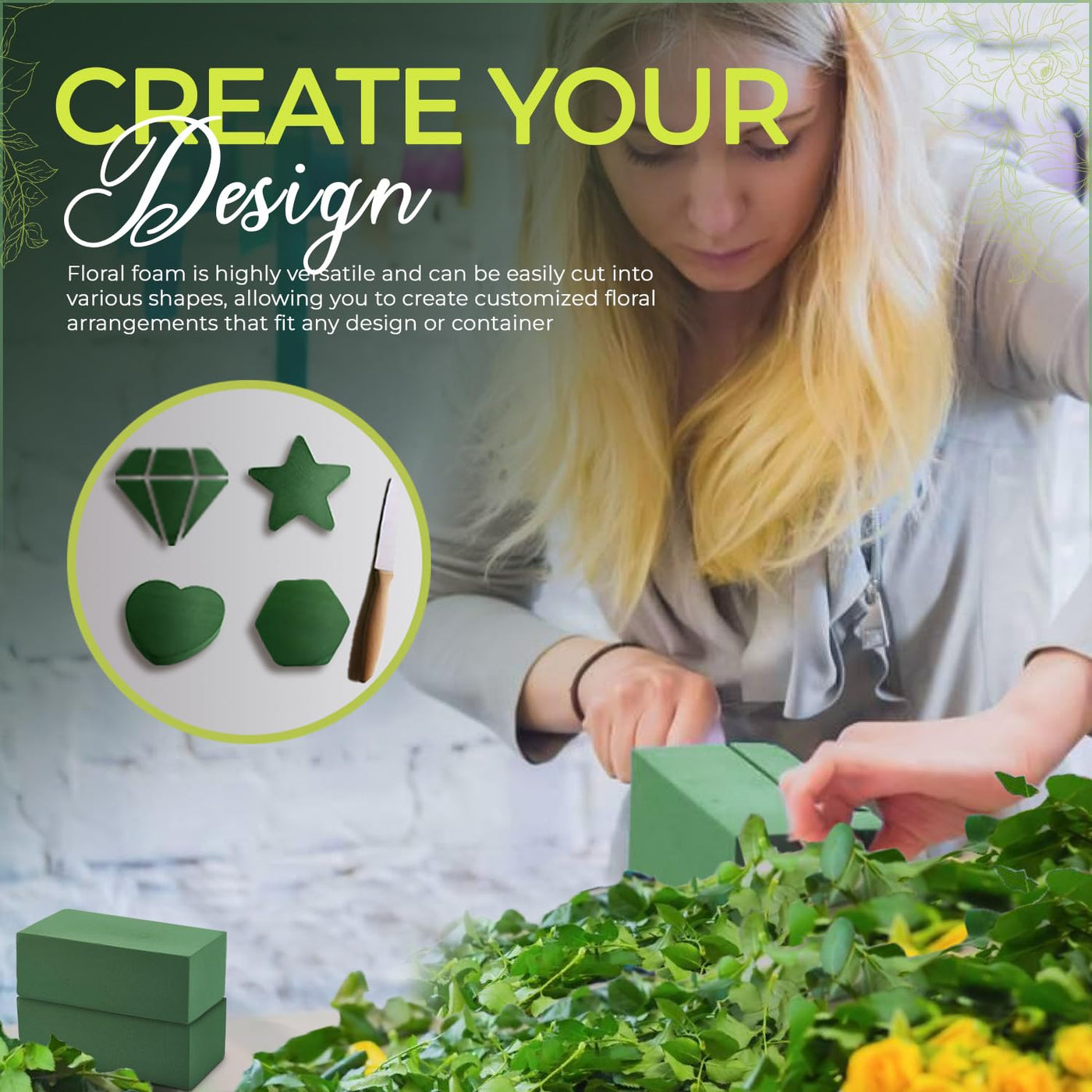 - 𝐂𝐮𝐬𝐭𝐨𝐦𝐢𝐳𝐚𝐛𝐥𝐞 𝐁𝐚𝐬𝐞 𝐟𝐨𝐫 𝐀𝐧𝐲 𝐕𝐚𝐬𝐞: Unleash your creativity! These green floristry foam block, sponge for flowers can be easily cut and shaped to perfectly fit any vase or container. These foam flowers allows for endless design possibilities, making them ideal for crafting centerpieces, bouquets, and stunning DIY floral displays.