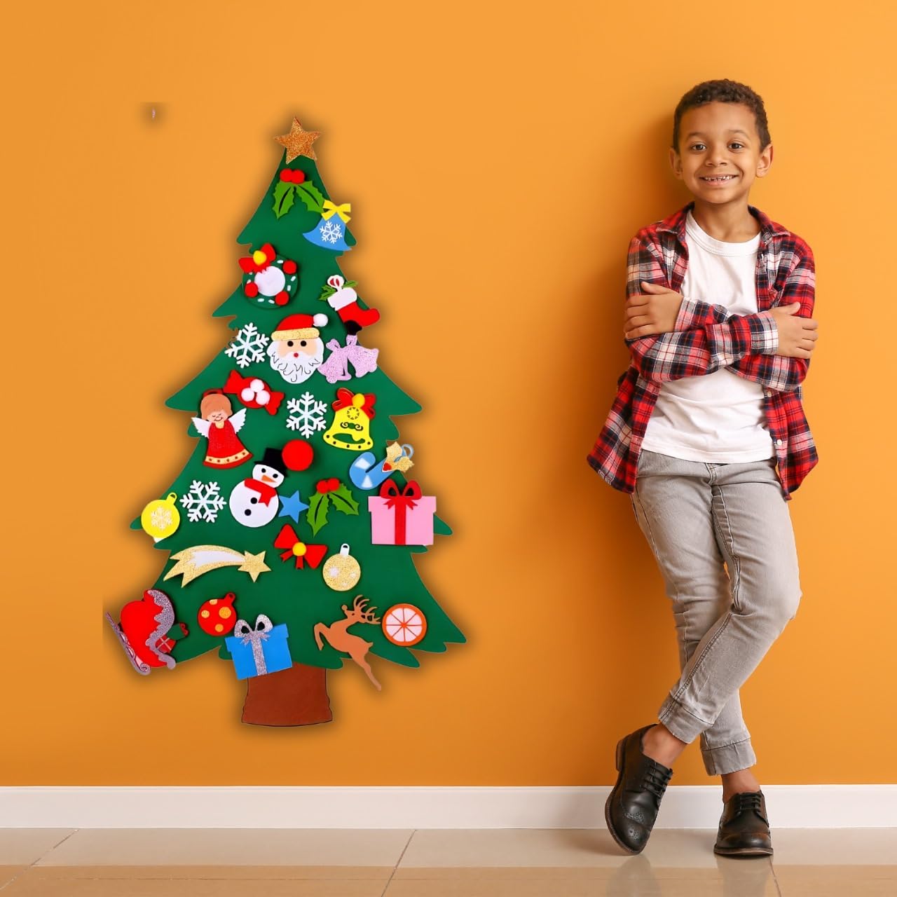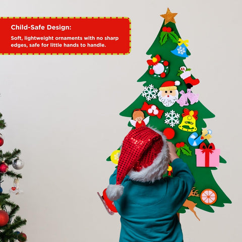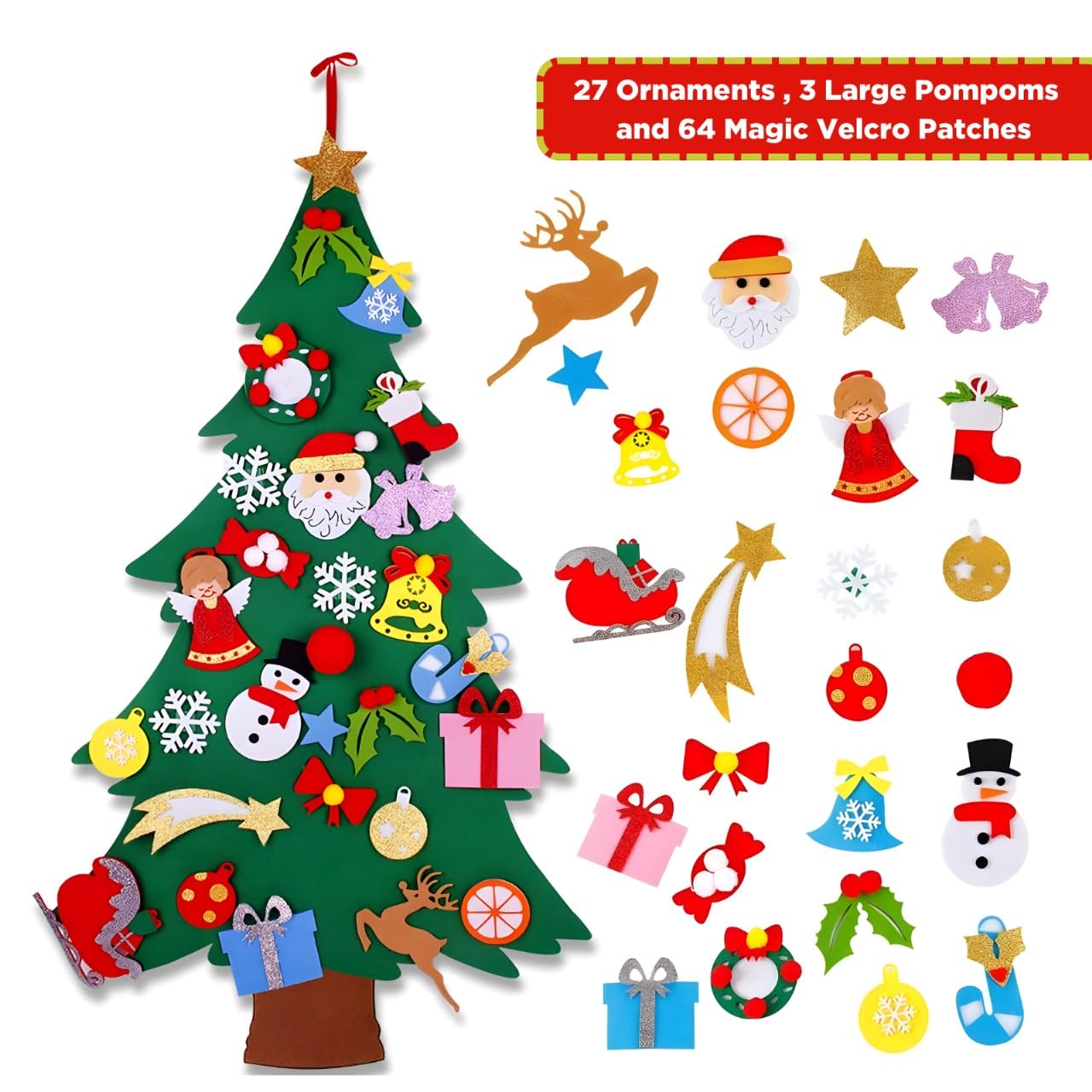 - 𝐏𝐞𝐫𝐟𝐞𝐜𝐭 𝐂𝐡𝐫𝐢𝐬𝐭𝐦𝐚𝐬 𝐆𝐢𝐟𝐭 𝐟𝐨𝐫 𝐊𝐢𝐝𝐬: A top choice for unique holiday decorations, this DIY toddler felt christmas tree with cute, classic velcro christmas tree for kids ornaments encourages cognitive and motor skill development in children while adding a festive touch to any celebration.