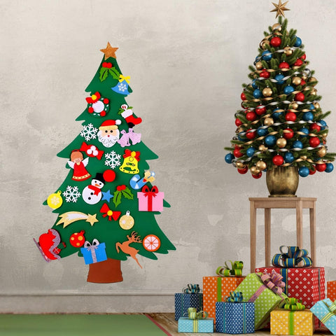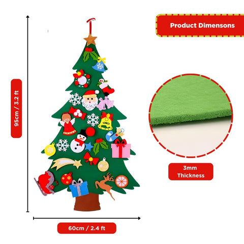 Details: Perfect Christmas Gift for Kids Delight your little ones with this Montessori 3D DIY felt Christmas tree, a unique holiday decoration that combines fun and learning. Designed for toddlers, this interactive 3D Christmas tree encourages cognitive and motor skill development while adding a festive touch to any celebration. Easy and Fun Wall Decoration With magic straps and sticky pads, kids can easily attach and remove colorful ornaments, making this tree ideal for decorating walls in homes, classrooms, or stores. Its versatility allows it to shine in both indoor and outdoor spaces, bringing joy to every corner. Space-Saving & Durable Design Crafted from 2mm thick, high-quality felt fabric, this safe, non-toxic, and dustproof tree is a long-lasting alternative to real trees. It takes up minimal space, rolls up easily for storage, and can be reused year after year, making it an eco-friendly choice. Simple Setup and Maintenance The Montessori 3D DIY felt Christmas tree arrives folded and may have creases, but a quick press or iron will restore it to its original shape, making it ready for use in your holiday décor. Interactive Holiday Fun for Kids This felt tree offers a hands-on way for toddlers to engage with the holiday spirit. Let your kids decorate their own tree with colorful ornaments and lights, fostering creativity and making holiday memories that will last a lifetime!