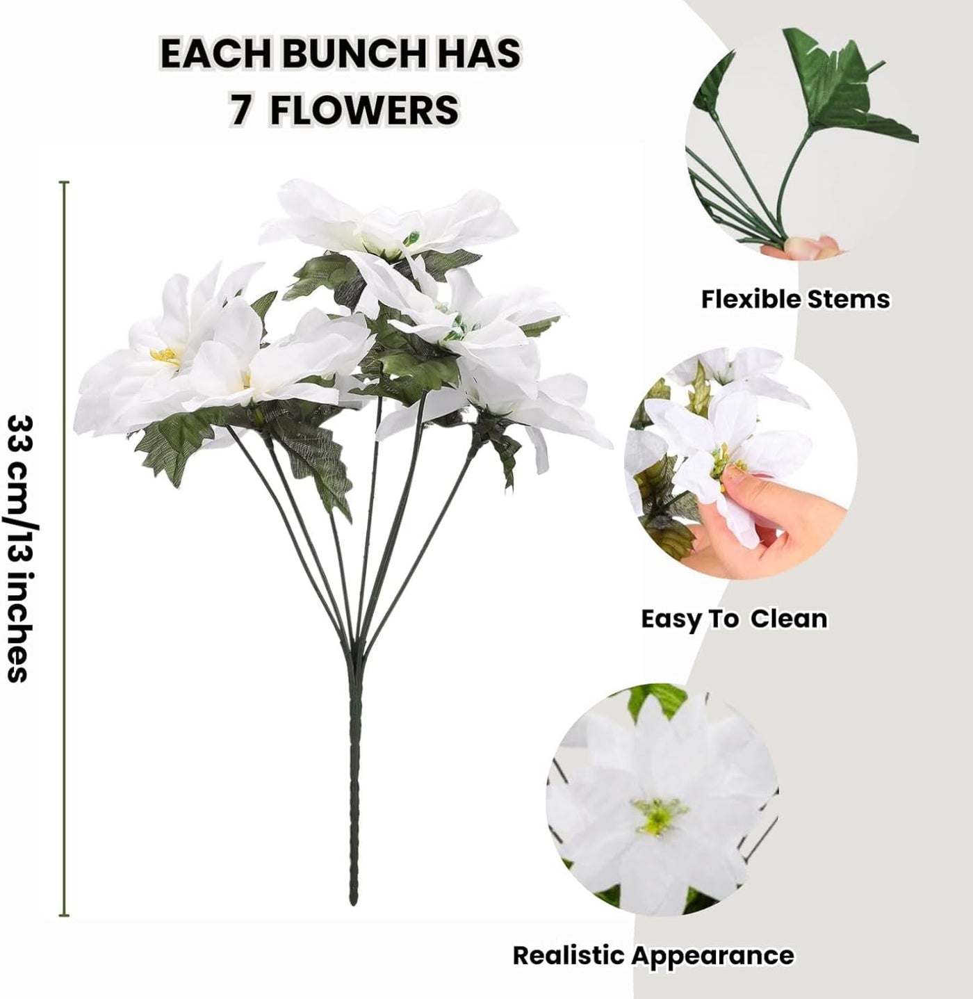 πππ πΈππππππ: Made from silk, plastic, and wire, our white poinsettia flowers showcase quality craftsmanship. Artificial poinsettia plant easy to clean, the firm flower heads resist damage, ensuring lasting beauty throughout the season.