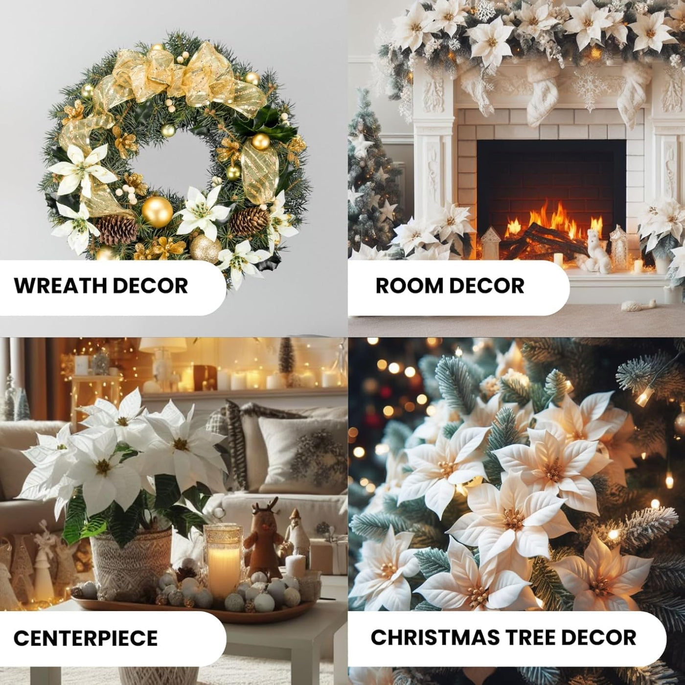 - π·πππ πΎππππ π¨πππππππππ: Create a serene ambiance with white Christmas flowers. Ideal for Christmas, artificial poinsettia flowers Thanksgiving, birthdays, weddings, and both indoor and outdoor celebrations.
