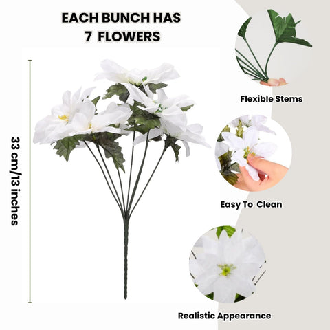 πππ πΈππππππ: Made from silk, plastic, and wire, our white poinsettia flowers showcase quality craftsmanship. Artificial poinsettia plant easy to clean, the firm flower heads resist damage, ensuring lasting beauty throughout the season.