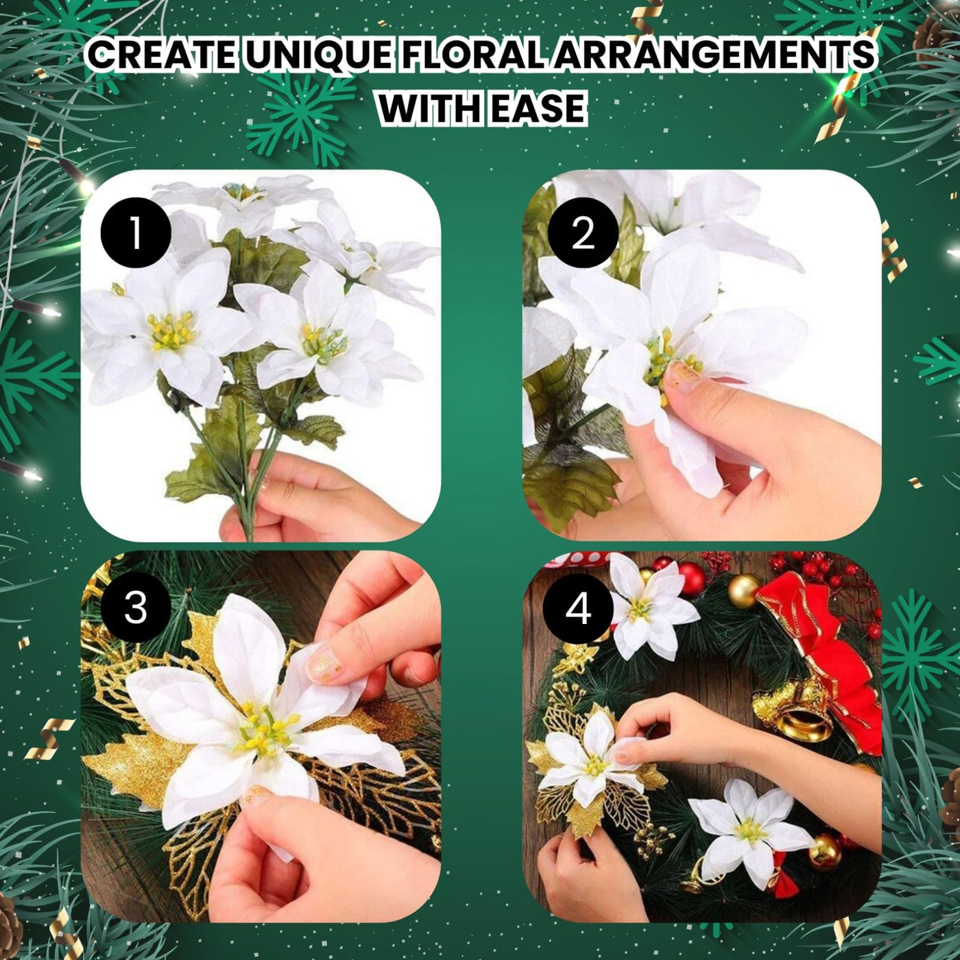 - π·πππ πΎππππ π¨πππππππππ: Create a serene ambiance with white Christmas flowers. Ideal for Christmas, artificial poinsettia flowers Thanksgiving, birthdays, weddings, and both indoor and outdoor celebrations.