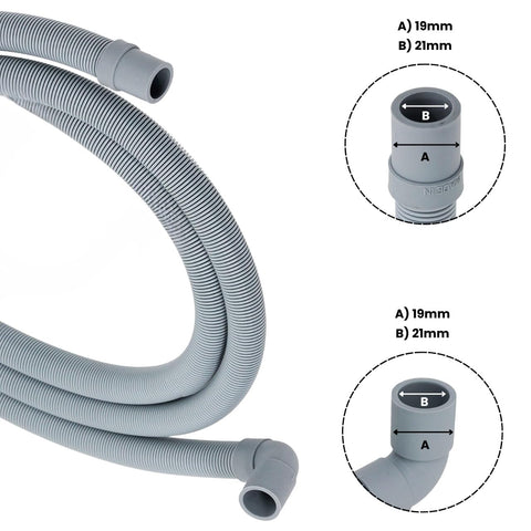 - Complete Set for Easy Installation This kit includes a 3.5m extra-long cold water inlet hose, 2.5m drain hose extension, a hook and clip kit, and dual-size connectors (19mm & 22mm). These components provide flexibility, ensuring your appliance is properly positioned, secured, and connected without leaks or movement issues.