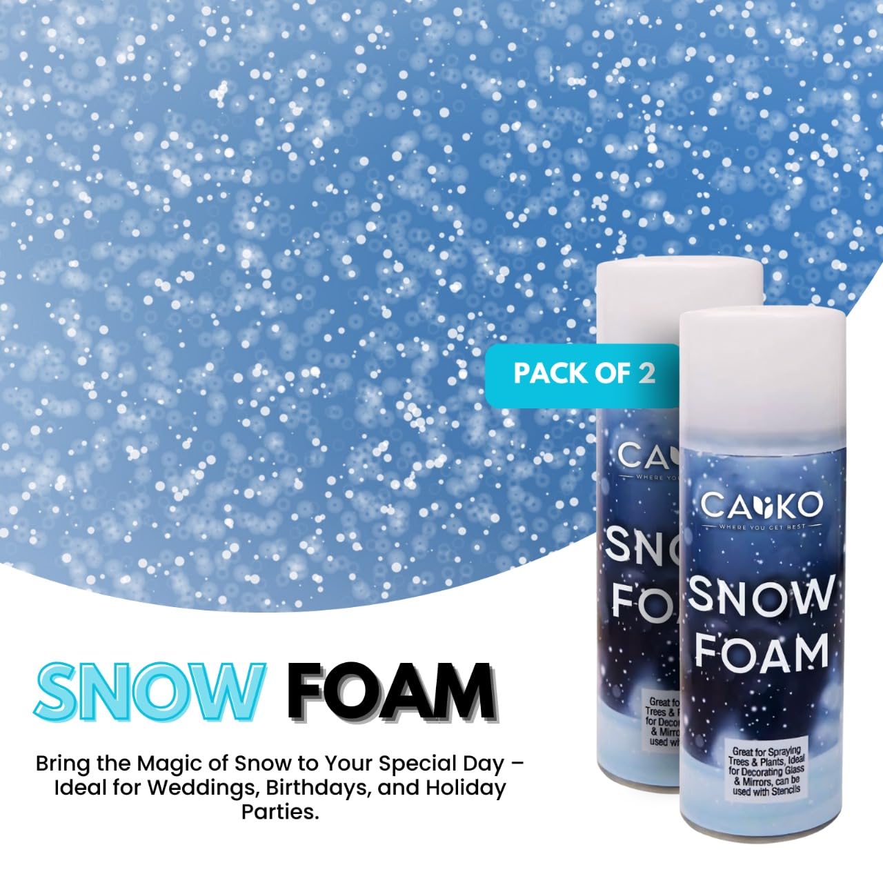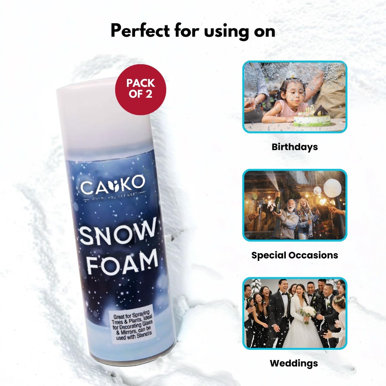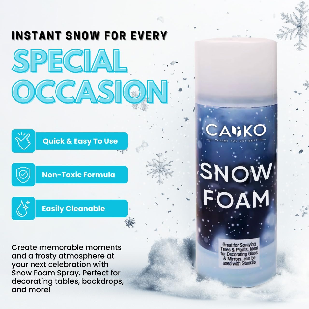 - Easy to Remove: Caliko Snow Faom usually easy to clean, with most formulas being water-based or designed for easy wiping from non-porous surfaces like windows and glass.